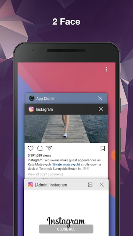 "App Cloner" is designed for users who log in more than multi Accounts of One App with only One Phone, while data of your main account and other account are in parallel and separate storage.