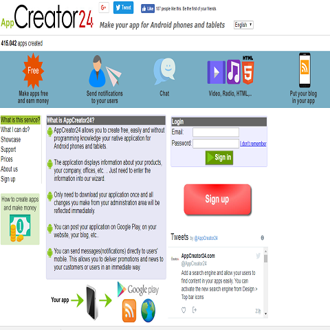 AppCreator24 allows you to create free, easily and without programming knowledge your native application for Android phones and tablets.