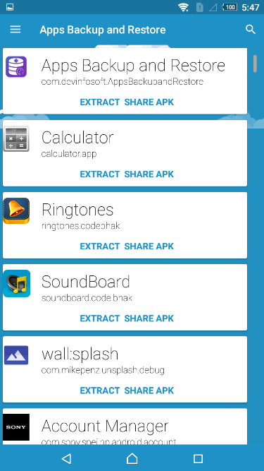 Apps Резервное копирование и восстановление с опцией закладки и увидеть систему, установить список приложений