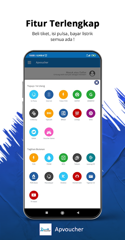 - Оплачивать счета PPOB (ежемесячные PLN, токены PLN, TELKOM Group, PGN, BPJS Health, PDAM, лизинг, постоплатные карты, игровые ваучеры, кабельное телевидение)