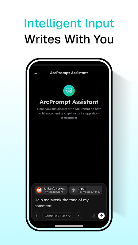 Когда вы касаетесь поля ввода, ИИ помогает вам составить, уточнить и естественным образом заполнить его.