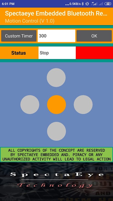 Приложение представляет собой пульт дистанционного управления с функцией управления движением и джойстиком для связи по Bluetooth.