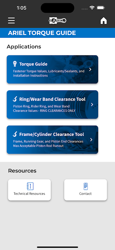 Выступая в качестве электронного дополнения к документации Ariel Engineering Reference Torque, Ariel Torque Guide позволяет быстро и удобно определить необходимые моменты затяжки и зазоры для вашего компрессора Ariel.