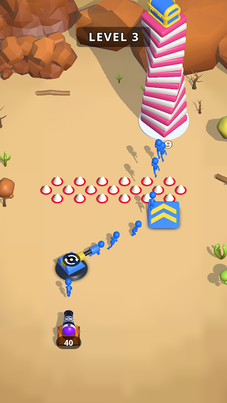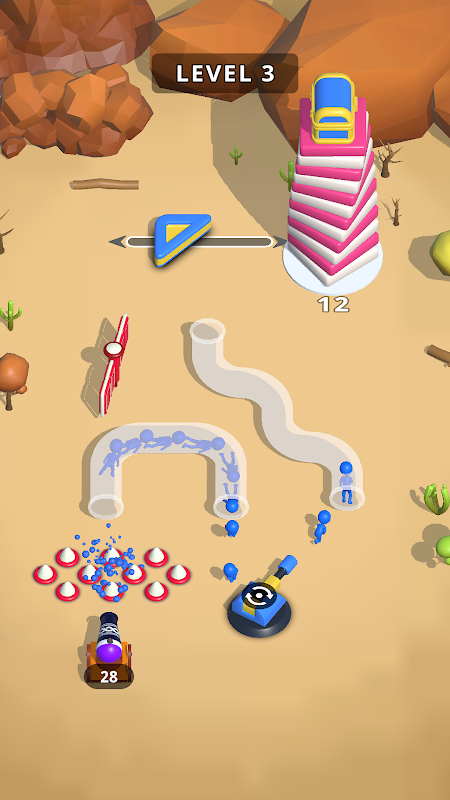 Отрегулируйте препятствия, чтобы проложить путь войскам к стеку. Уничтожьте башню стека и перейдите на следующий уровень.