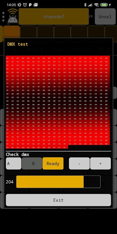 - DMX out визуализатор (в тесте DMX)