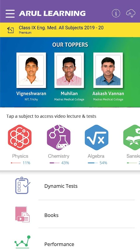 With the launch of this learning App, Arul Institute is poised to enter a new era of technology enabled learning. The App is available exclusively to the students and teachers of Arul Institute. Through this Learning App, you can access video lectures by expert teachers and take tests/assessments after watching the video lecture and/or after completing a chapter, whenever you want. These video lectures will help you in understanding concepts and solving question papers. Since the complete course videos are available with you 24/7 you can study and revise anytime throughout the year. The content is well organized by chapters and simply structured for easy navigation. Each chapter is broken into small modules of 5 to 7 mins each to keep the lectures interesting and to the point. The relevant topic is explained thoroughly. Animation and presentation have been included so that you can understand concepts better. You can even add notes to the video timeline and assess your performance with tests at the end of every chapter (EoC) and module (EoM).