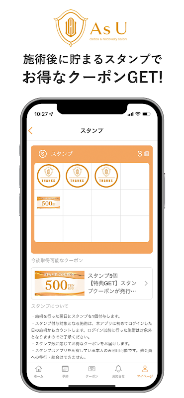 Вы можете получать самую свежую информацию и предложения [As U] через приложение. Кроме того, вы можете в любое время проверить меню и желаемый временной интервал и сделать предварительный заказ со своего смартфона. Установив приложение, вы сможете использовать [As U] более удобно и близко к вам.