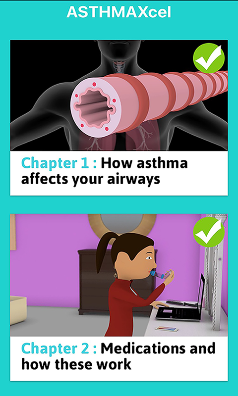Загрузить приложение ASTHMAXcel затем завершить 10 глав, чтобы узнать, как лучше контролировать астму.