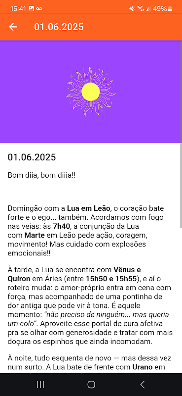 ✨ Ежедневные рекомендации: получайте астрологические сообщения, которые будут направлять ваши решения и действия, с практическими советами, чтобы жить каждый день с большим балансом и целью.
