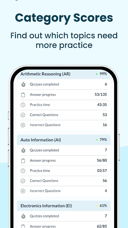 Более 900 практических вопросов ASVAB – охватывают все разделы экзамена ASVAB с реалистичными тестовыми вопросами.