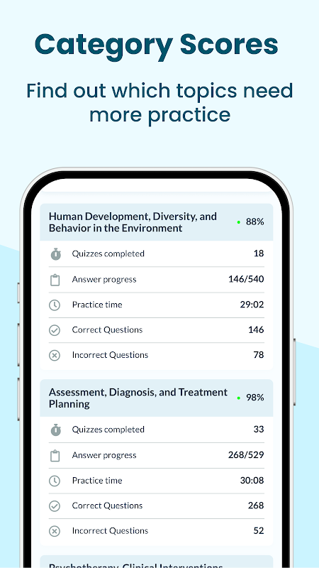 Учитесь быстрее и проще, используя все необходимые инструменты для успеха! Независимо от того, работаете ли вы на работе или отдыхаете дома, возьмите с собой наше приложение Study App и сдайте экзамены ASWB с уверенностью.