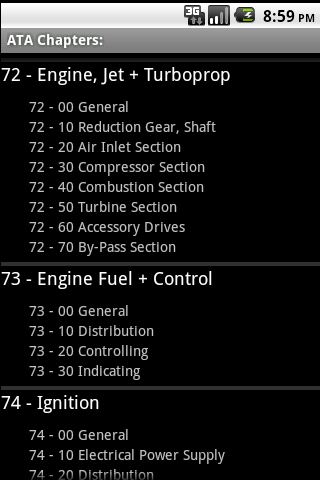 ATA главы позволит вам найти ATA (Air Transport Association) глава легко через прокручивать список всех существующих глав, включая суб-ATA глав.