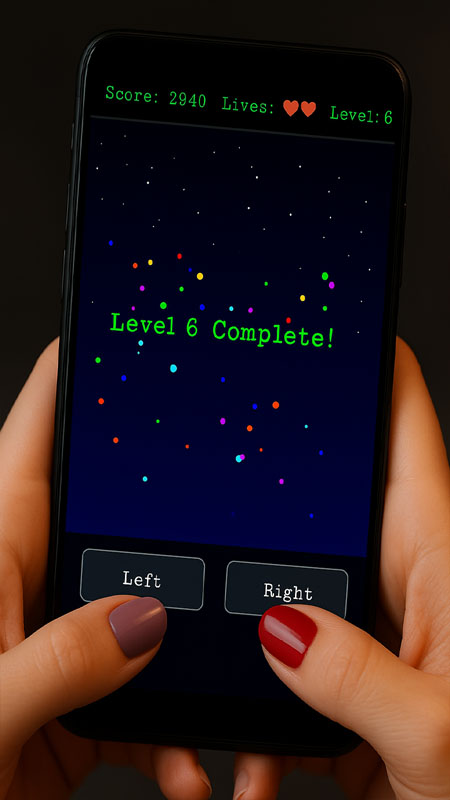 Потрясающие визуальные эффекты: наслаждайтесь яркой графикой, звездным фоном и ослепительными эффектами частиц для захватывающего опыта.