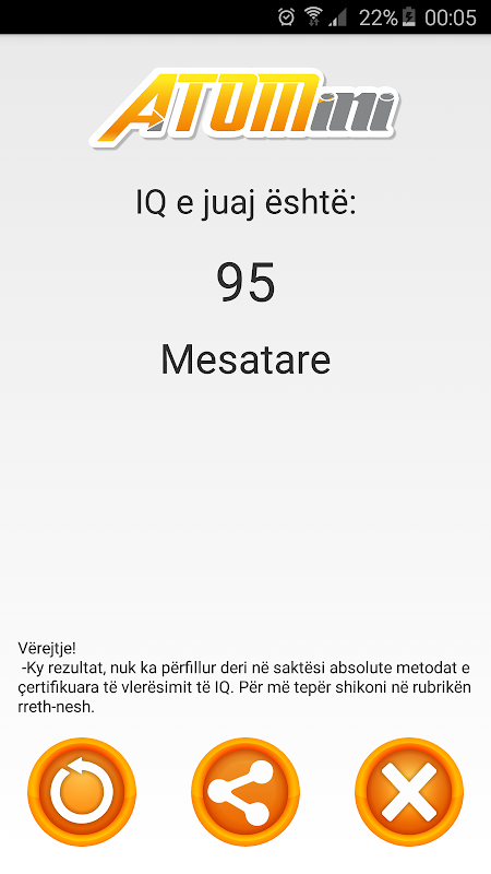 But this application only took types of questions used in these tests and disregarded the rules of certified assessment for IQ, and as such, this application does not fulfill the conditions that its assessment is correct and valid, but It can be used for exercise and entertainment.