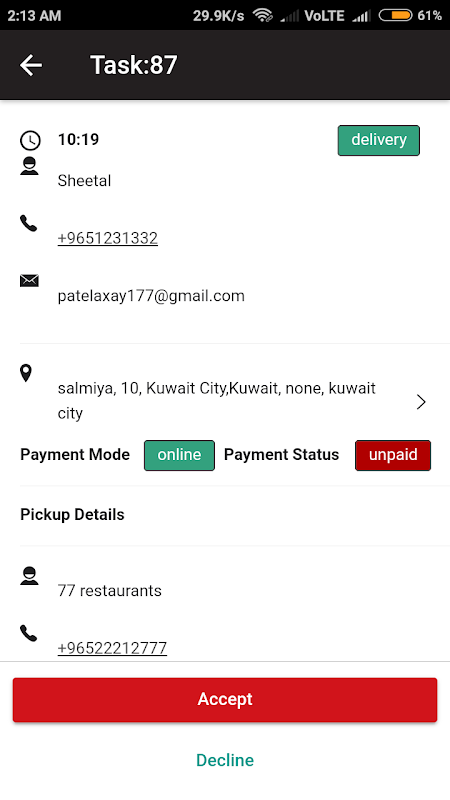 Delivery Guy: This is the mobile app on which the delivery guys receive requests and execute the delivery tasks assigned.