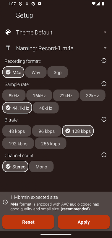 Настройка лежит в основе Audio Recorder Studio, позволяя пользователям адаптировать процесс записи в соответствии со своими спецификациями. Благодаря регулируемым настройкам частоты дискретизации, битрейта и предпочтений стерео/моно люди могут точно настраивать свои записи для достижения идеального баланса между качеством и размером файла. Кроме того, приложение может похвастаться богатым выбором ярких тем, позволяющих пользователям персонализировать свой интерфейс и придать ему свой уникальный стиль и индивидуальность.