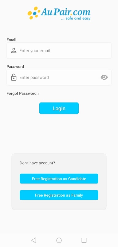 1. Для использования этого приложения необходимо зарегистрироваться на сайте AuPair.com.