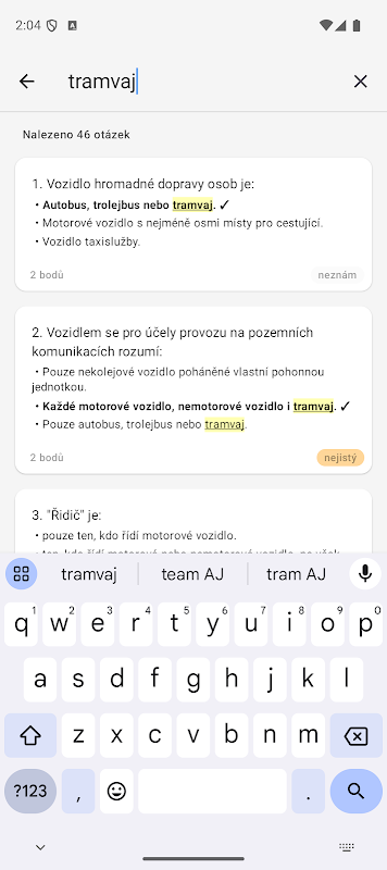 Приложение использует общедоступную информацию с сайта Министерства транспорта (https://etesty2.mdcr.cz) и Электронного сборника законов (https://www.e-sbirka.cz).