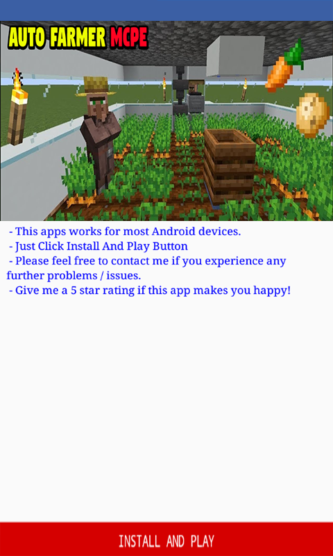 Это приложение позволяет легко добавлять Auto Farmer Addon в игры MCPE!