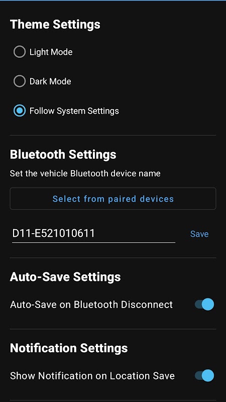 Автоматически сохраняйте местоположение вашего автомобиля при отключении Bluetooth.