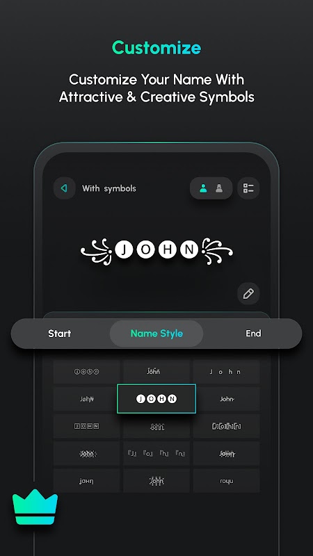 2.Символы: дополните имя различными символами. Выбирайте из множества символов, чтобы персонализировать имя и сделать его уникальным.