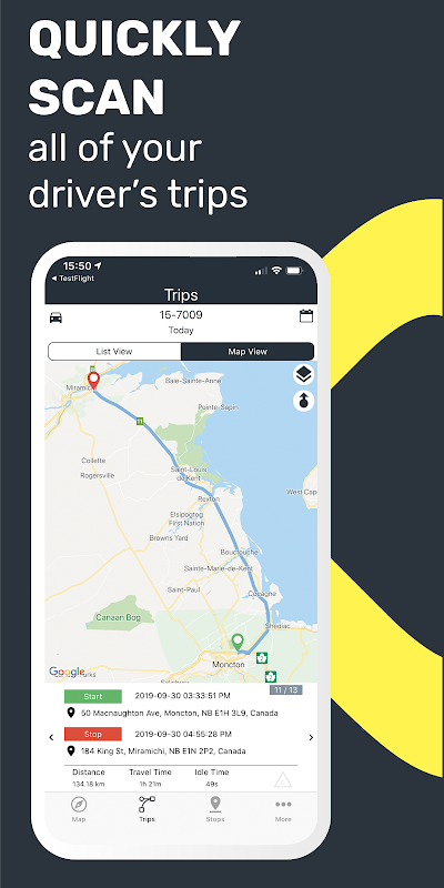• Обзор каждой поездки и маршрут в деталях.