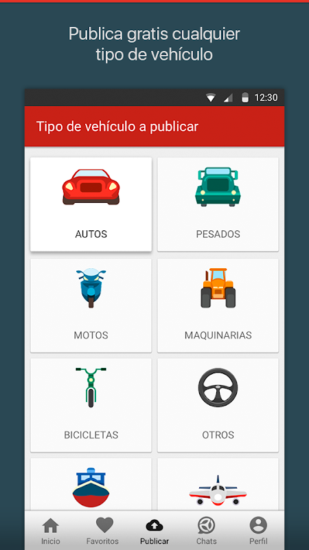 Es importante que sepas que la App no solo tiene autos. Nuestro inventario incluye motos, buses, camiones, barcos, aviones, bicicletas. Nos especializamos en vehículos y somos el líder digital de esta industria.