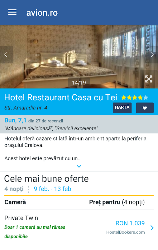 * Vizualizaţi descrieri detaliate și fotografii pentru fiecare hotel și cameră şi fiţi siguri că veţi alege cea mai bună opţiune.