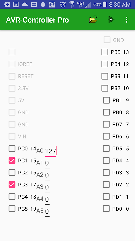 Превратите свой смартфон в симулятор Arduino. Приложение AVR Controller предназначено для моделирования контроллера Arduino Uno. Это приложение позволяет загружать файлы * .hex, созданные для Arduino Uno. Вы можете использовать официальную среду разработки Arduino, ArduinoDroid или любую другую среду IDE / компилятор, в которой хотите создавать файлы * .hex. После открытия вы можете запустить программу, и симулятор покажет, какие выходы Arduino Uno включены или выключены.