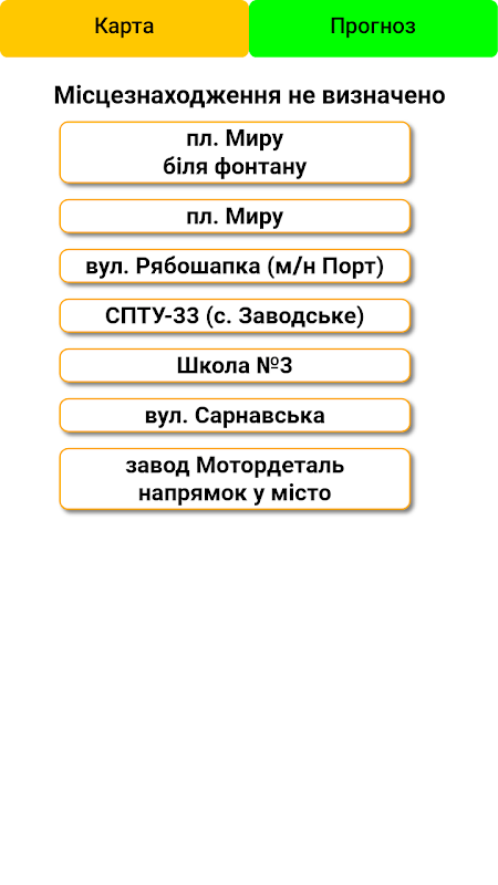 За допомогою цього додатку Ви зможете побачити розташування та рух транспорту на потрібному Вам маршруті, а також дізнатись очікуванний час прибуття транспорту на потрібну Вам зупинку.