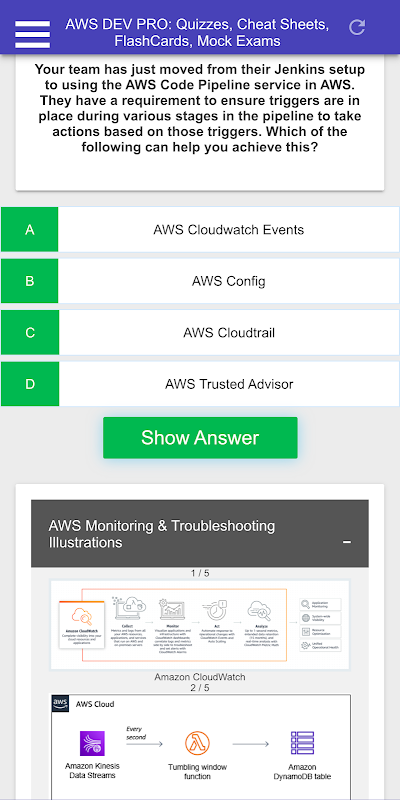 Примечание и отказ от ответственности: мы не связаны с AWS или Amazon. Вопросы в этом приложении должны помочь вам сдать экзамен, но это не гарантируется. Мы не несем ответственности за экзамен, который вы не сдали.