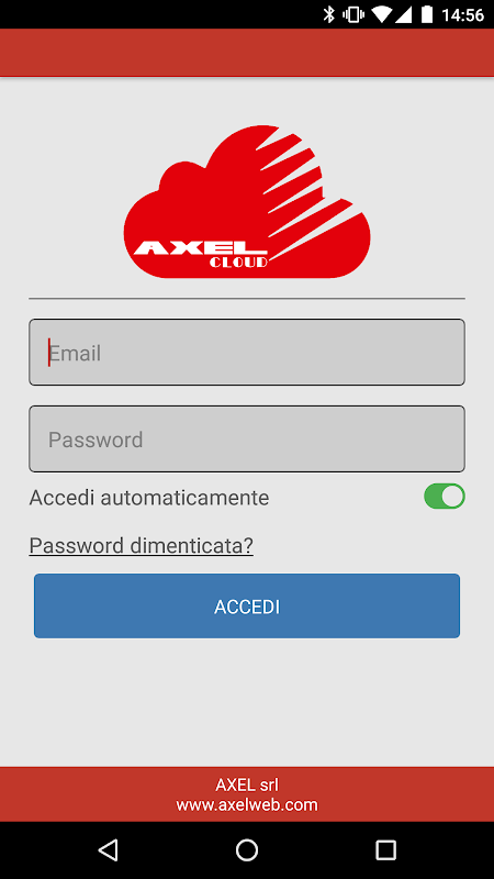 Вам нужно будет прописали система центральной Аксель входа в систему с действительным именем пользователя и паролем к профилю вы создали на AxelCloud портале. Перейти на портал www.axel-cloud.it для регистрации и зарегистрировать свою систему.