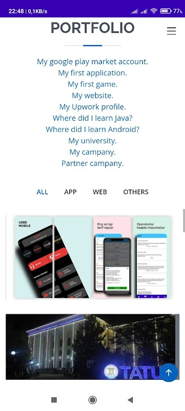 Salom bu ilova orqali siz men haqimda oz bo'lsa ham ma'lumotlarga ega bo'lasiz.Bu yerda yangiliklar va endi boshlaydigan loyihalarim haqida so'z borishi mumkin. Asosan мужчины tugallangan loyihalr haqida nahr qilaman.