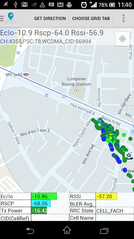 - In GSM mode : Display connected line from current position to Serving cell and Neighbor cells.