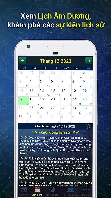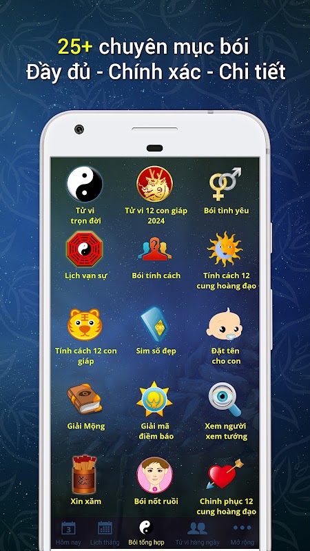 Приложение для просмотра гаданий, ежедневных гороскопов и универсальных календарей исключительно для вьетнамцев.