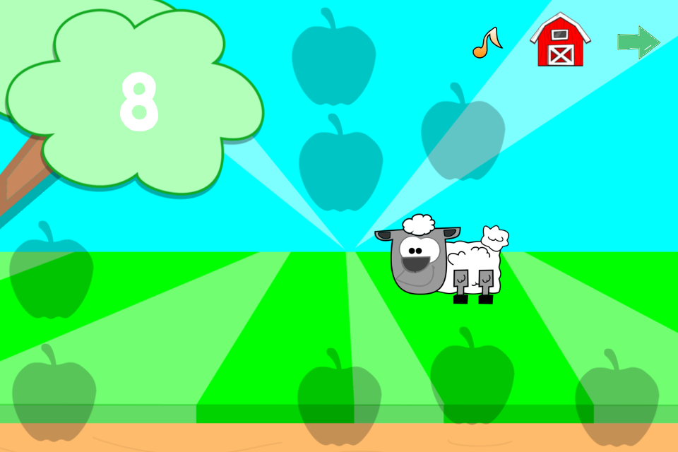 Number counting game where the player creates apples by touching the tree branch, and then drags the apple to a shadow. This game goes up to ten.
