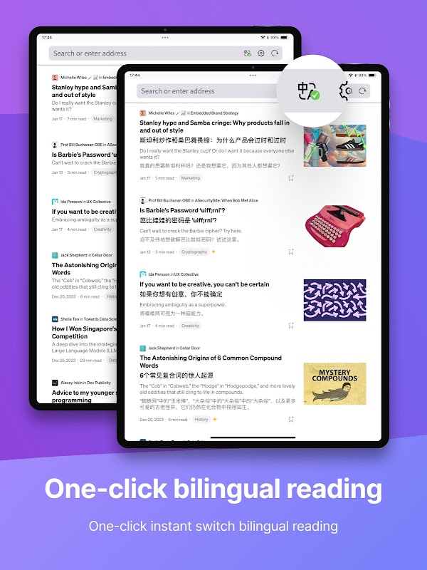 Чтение иностранных веб-сайтов с эффектом погружения: Интеллектуальное определение и перевод основного содержания веб-страниц в двуязычный формат, Babel Browser предлагает новый опыт чтения на иностранных языках, отсюда и название «Babel Browser».
