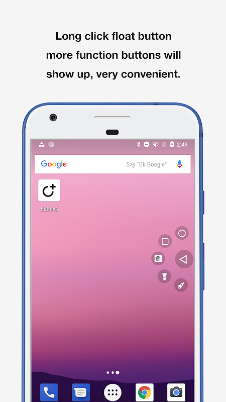 Если кнопка физической системы вашего телефона была сломана, это приложение может сохранить ваш телефон. вы можете нажать кнопку «домой», кнопку «Назад» и последнюю кнопку с этим приложением.