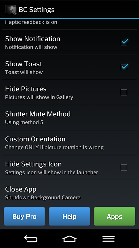 • Shutter sound may not be disabled on some phones (as it is required by local laws). You will need to root your phone to silence your shutter sound.