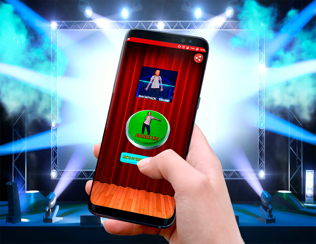 The application contains a button if you press it sounds the dancesong of the Backpack Kid.