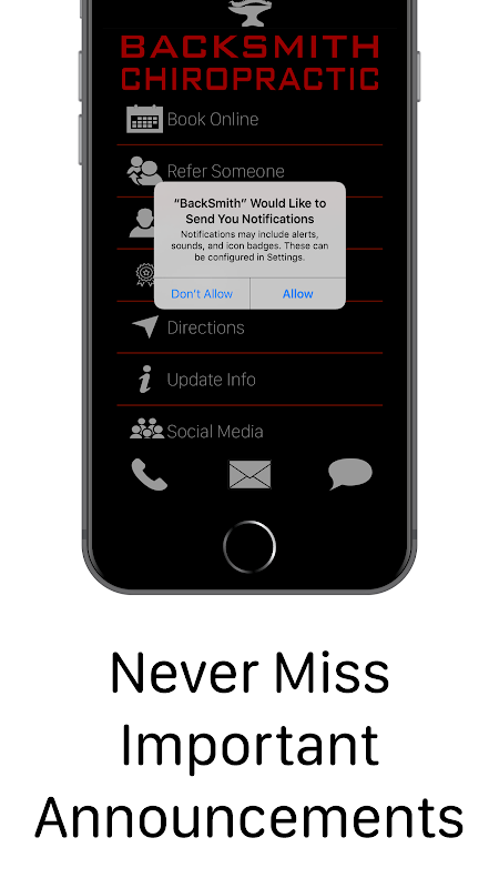 Это приложение позволяет пациентам быстро и легко связаться с нашим офисом. Будь то бронирование на прием, позвонив, текстовых сообщений, по электронной почте, или получать указания (возможно, из той части города, они не знакомы с), BackSmith Connect делает встречи пациентов легче.
