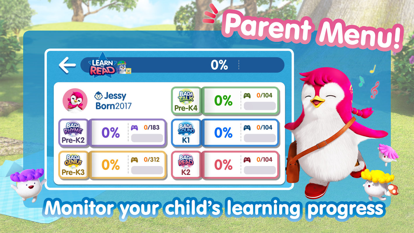- The app also includes a unique Parent’s Menu where you can get detailed reports of your child’s progress.