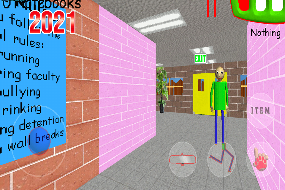 • Story mode requires you to collect 7 notebooks and then escape the school to win. The more notebooks you collect, the faster Baldi will become! Simple, but very challenging.