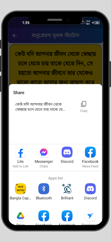 Приложение Bangla Caption имеет чистый пользовательский интерфейс и очень легко читается и копирует подпись, статус и цитаты, которыми вы можете поделиться в социальных сетях или в текстовом сообщении с кем угодно.