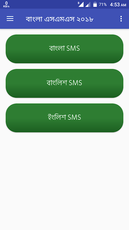 Мы также добавили в это приложение Banglish SMS, думая о тех, кто отправляет SMS в Бангладеш. Где вы получите еще много категорий.