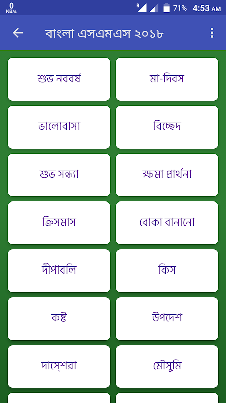 Есть много категорий, в этом приложении у нас в общей сложности более 30 тысяч Bangla SMS.
