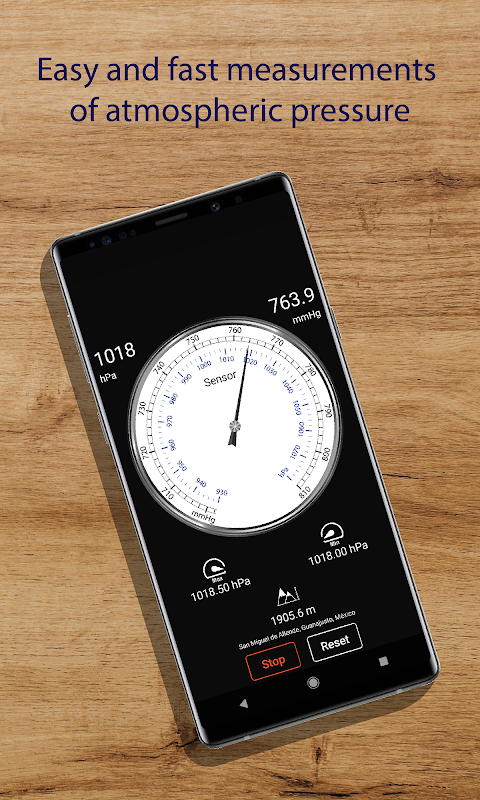 Барометр измеряет атмосферное давление в режиме реального времени с помощью датчика давления, встроенного в устройство, а также получает данные о высоте над уровнем моря с помощью GPS. Если устройство НЕ ИМЕЕТ ДАТЧИКА ДАВЛЕНИЯ, приложение будет получать данные о давлении из интернета. Кроме того, приложение также будет получать данные о температуре, влажности и облачности.