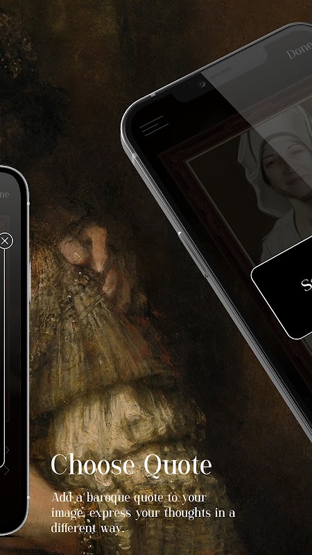 BaroqueMe provides you with an ultimate baroque experience: both visual and auditory. 10 different baroque compositions are incorporated in the app to make your stay at BaroqueMe even more pleasant. You can even choose a favorite melody to set as your app default.