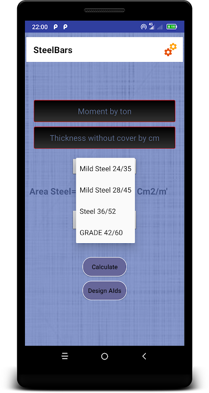 Идеальное приложение, чтобы определить, диаметр и число стальных стержней, необходимых для выполнения максимального момента в конструктивных элементах