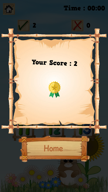 Enough about learning. Where is playtime here? Well a game has also been devised on Basic Math. This section has been divided into two segments, a one minute segment and a two minute segment. The objective of this game is to answer as many questions correctly as they can in one minute or two minutes, depending on the chosen option. Once the time is up, the child gets a score of how well they have done. If for example, the choice was one minute and the child answered 10 questions correctly out of 12 then the score will appear on the screen as 10 correct and 2 wrong. This is represented by way of text boxes on the interactive screen.